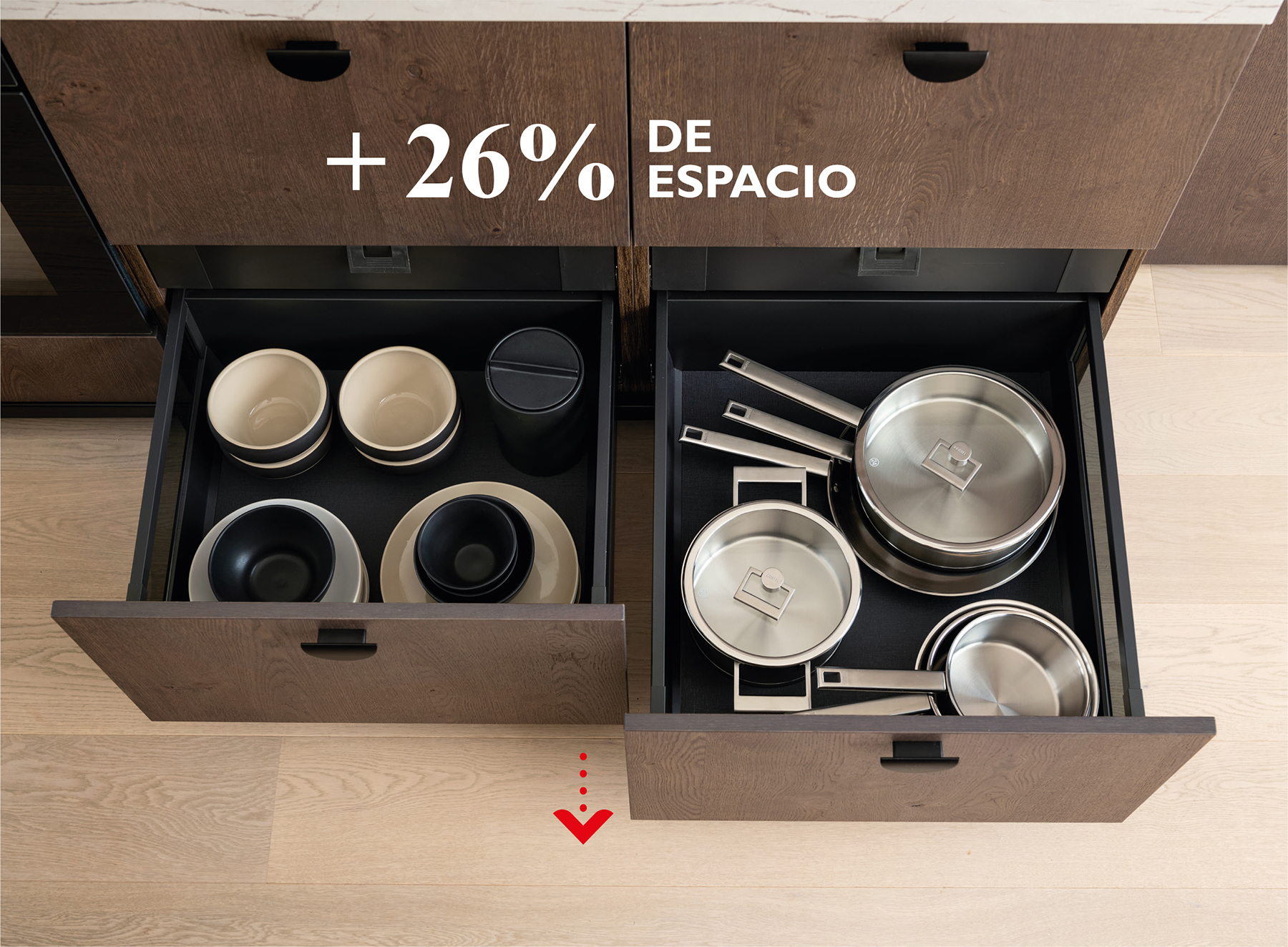 Gracias a la profundidad de 62,5 cm, disfrutarás de cajones más profundos que te permitirán guardar ollas y sartenes, varias pilas de platos o incluso electrodomésticos voluminosos.