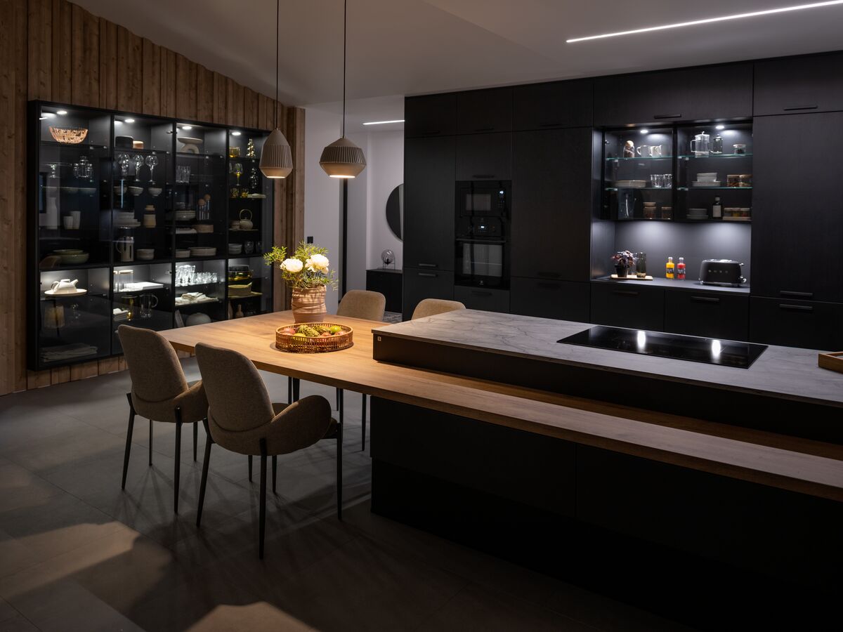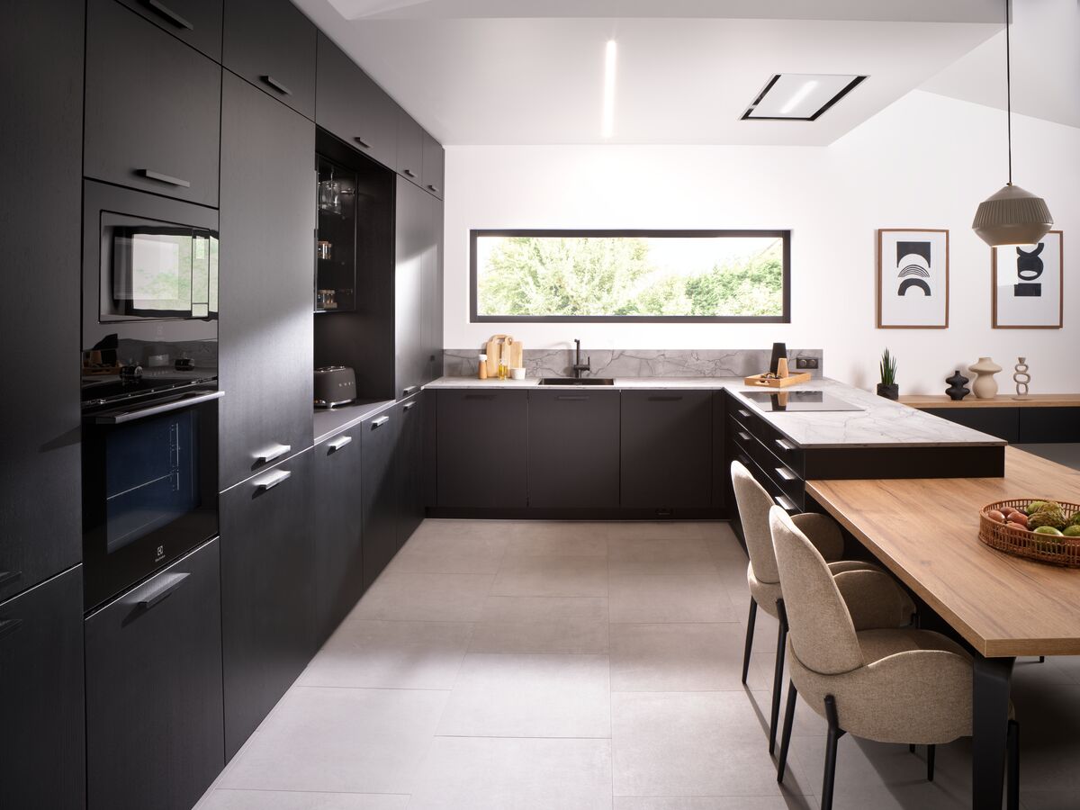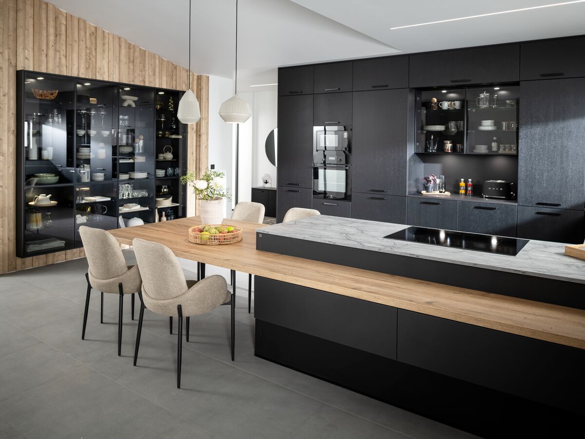Le modèle "Copenhague" combine sobriété des lignes et matériaux nobles pour créer une ambiance contemporaine et conviviale. L’îlot central spacieux devient le cœur de la pièce, conçu pour accueillir aussi bien les moments de partage que les repas quotidiens.