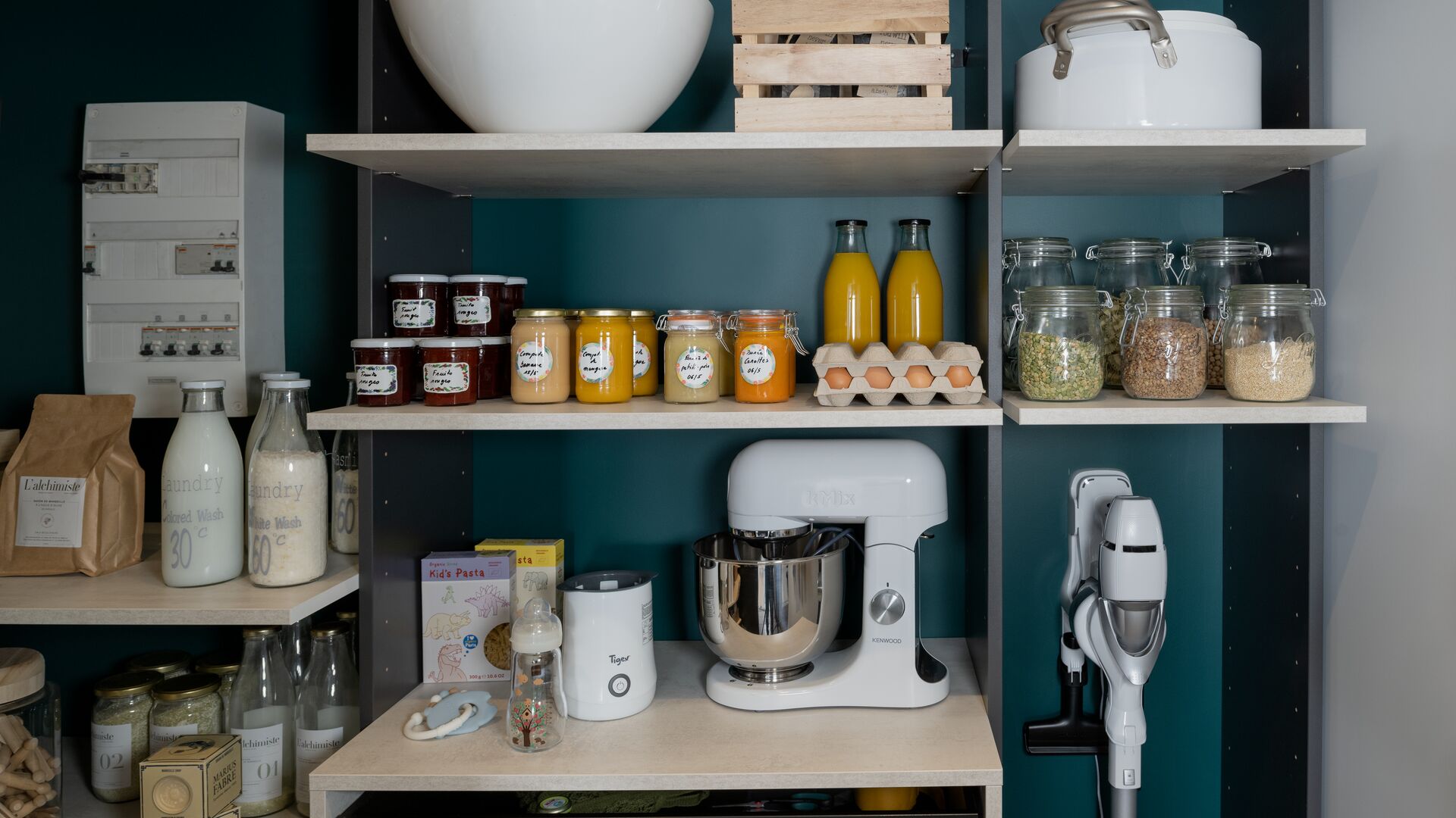 Uw interieur organiseren was nog nooit zo eenvoudig en plezierig als met de vele opbergmogelijkheden van deze voorraadkast op maat. En dat komt goed uit, want met een klein kind konden Sophie en Paul wel een goede opbergoplossing gebruiken! Deze jonge ouders hebben hun provisiekast expres in hun keuken geplaatst, omdat ze er niet alleen hun keukengerei en -apparatuur in opbergen. Het voordeel van deze provisiekast met diverse meubelen en schappen, is dat ze nu over een geoptimaliseerde en vooral veelzijdige opbergruimte beschikken om hun dagelijks leven te organiseren.